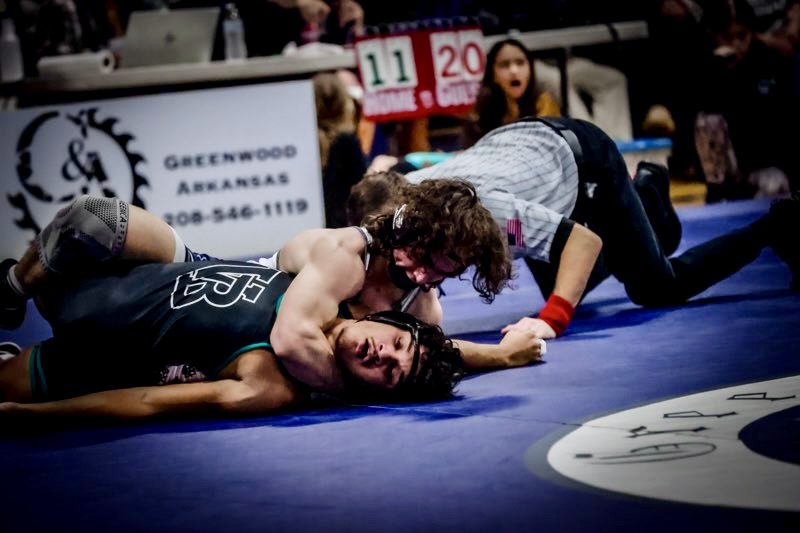 (right) Greenwood wrestler Jeremy Johnson (photo courtesy of John Kincade)