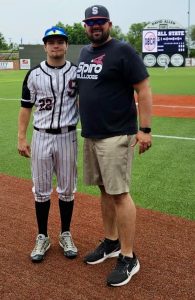 Spiro coach D.J. Gist (right) with former player Hunter Sparks at the 2024 Oklahoma Baseball Coaches Association All-State game.