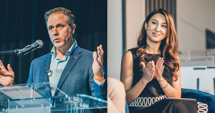 (from left) Nelson Peacock, CEO of the Northwest Arkansas Council, and Serafina Lalany, who heads the Northwest Arkansas Council’s Onward FX experience